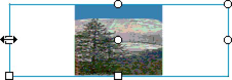 サイズハンドル(境界ボックスの先端中央にあるハンドルアイコン)のロールオーバーアイコンは、内側に矢印の付いた円です。