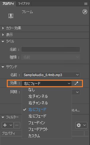 フレームにサウンドを追加するか、既にサウンドを含んでいるフレームを選択します。