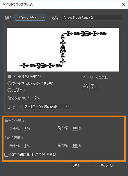 - アートブラシオプションの編集ボックスで、次を編集できます。