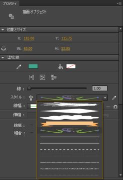 ステージ上のシェイプを選択し、プロパティパネルでアートブラシの線のスタイルを選択して、シェイプの線のスタイルを変更します。