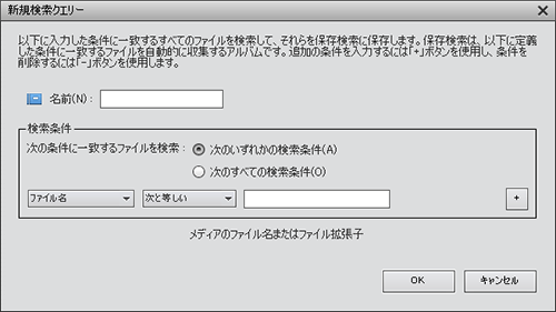 新規検索クエリーダイアログボックスで検索条件を入力し、「OK」をクリックします。