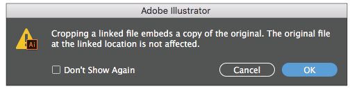 リンク画像を操作した場合、切り抜き後にリンクされたファイルが埋め込まれたことを確認するメッセージが Illustrator に表示されます。「OK」をクリックして続行します。