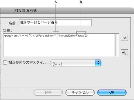 相互参照内の文字スタイルの適用
