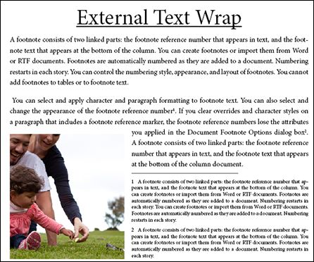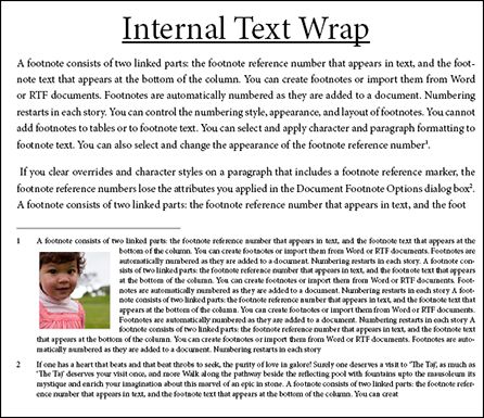 脚注でテキストの回り込みが適用されるインラインまたはアンカー付きオブジェクトを配置できます。テキストはオブジェクトを回り込み、そのオブジェクトの回りでシームレスに調整されます。