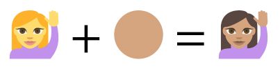 初期設定のキャラクター(通常は肌の色がイエロー、ブルー、またはグレーに設定されています)やボディパーツと、使用可能な肌の色を合成します。元の初期設定のキャラクターは、選択した肌の色にマッチするように塗り直されます。現在、2 人以上の人物で構成された字形では、通常このような合成を行うことはできません。