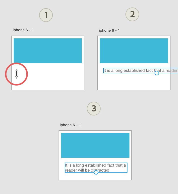 アイコンを選択します。エリア内テキストのサイズを変更するには、すべての辺に表示されるサイズ変更ハンドルをクリックしてドラッグします。テキストがテキスト領域内に収まらない場合、XD に赤いサイズ変更ハンドルで示されます。