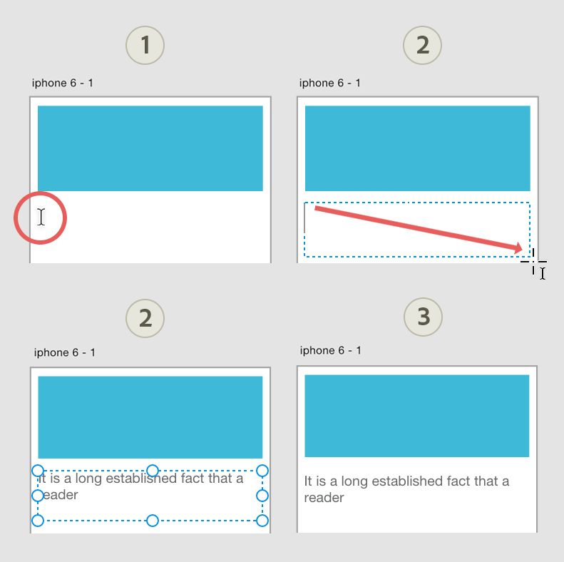 テキストツールをクリックした後、テキストを配置するカンバスの場所をクリック&ドラッグしてテキストエリアを定義します。次に、そのエリア内をクリックしてテキストの入力を開始します。