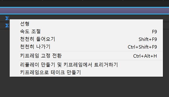 다음 키프레임 메뉴 명령 중 하나를 선택할 수 있습니다.