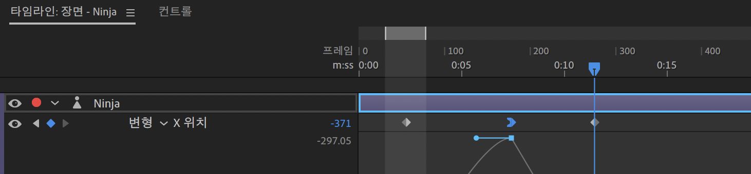 키프레임 사이에 현재 시간 표시기가 놓인 것입니다.