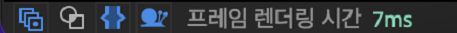 B. [타임라인] 바닥글의 [프레임 렌더링 시간] 디스플레이는 현재 프레임을 렌더링하는 데 걸린 총 시간을 표시하며, 언제든 확인할 수 있습니다.