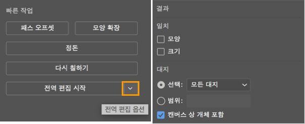 편집 옵션을 설정하지 않으면 기본적으로 아트보드 전체의 모든 유사 오브젝트가 편집을 위해 선택됩니다.