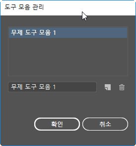 모든 도구 창에서 하나 또는 여러 도구를 하나의 그룹으로 함께 도구 모음에 추가할 수 있습니다.