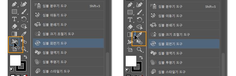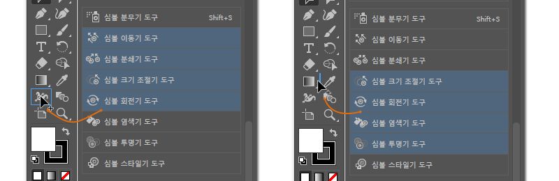 Alt 키(Windows) 또는 Option 키(macOS)를 누른 상태로 도구를 클릭하여 숨겨진 도구를 살펴보고 원하는 도구를 선택합니다.