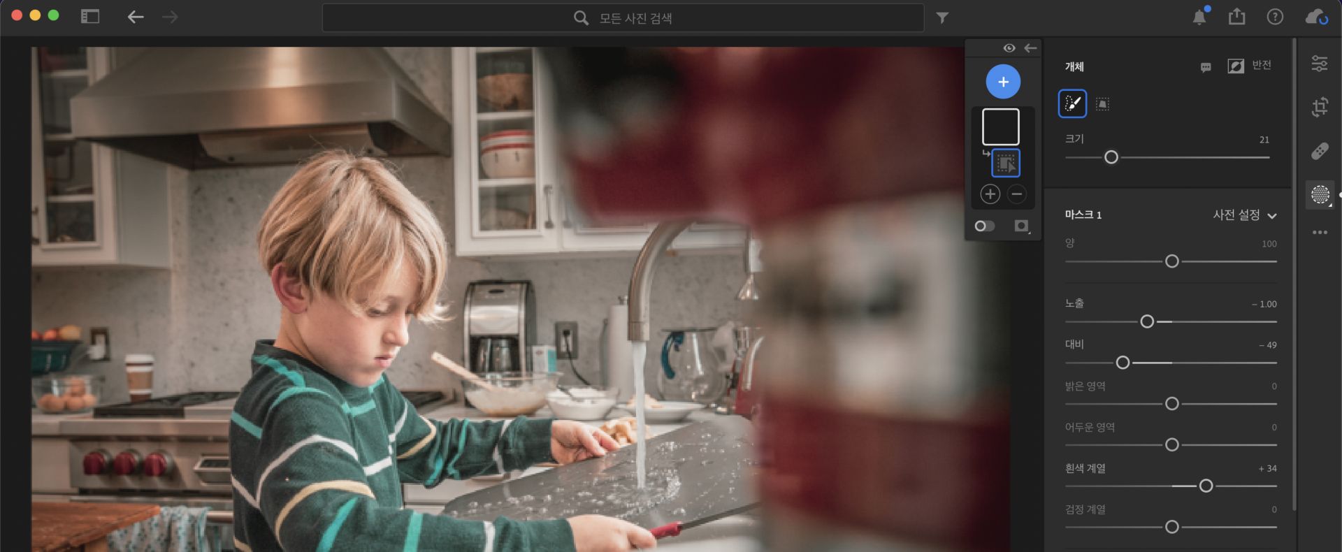 Lightroom의 마스크 패널을 사용하면 이미지의 모든 부분에서 작업할 수 있으므로 편집 컨트롤과 함께 특정 마스크를 사용하여 상세하고 정밀하게 조정할 수 있습니다. 이 기능에는 수동 마스크와 인공 지능을 사용하는 마스크가 모두 포함됩니다. 이 문서에서 언급된 마스킹 기능을 사용해 보고 Lightroom 커뮤니티에 의견을 공유하세요.