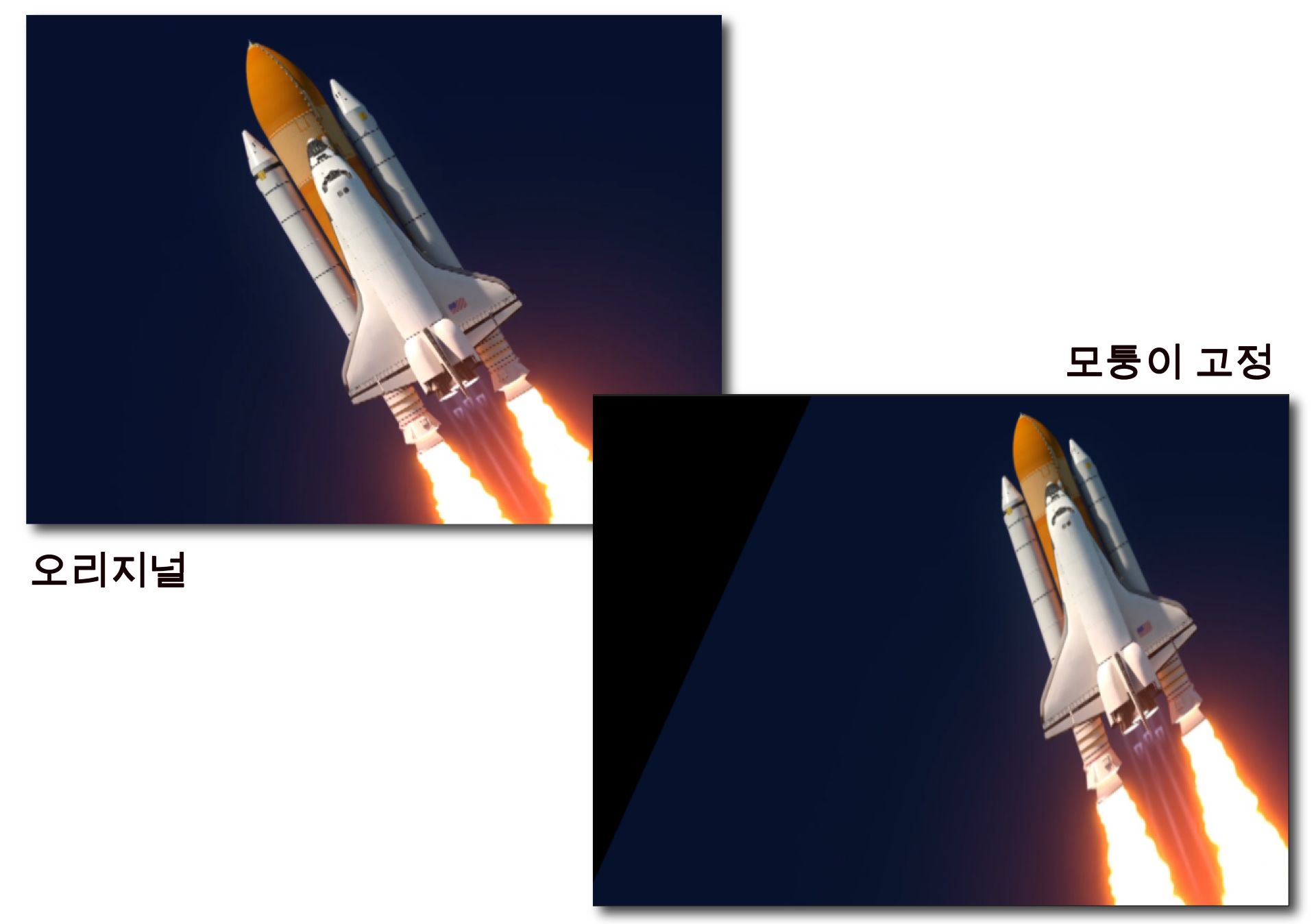 이 효과는 이미지의 모퉁이 네 개를 이동하여 이미지를 왜곡합니다. 이 효과를 사용하여 이미지를 늘리거나, 축소하거나, 기울이거나, 비틀거나, 문이 열리는 것과 같은 원근감과 경첩 동작을 모방할 수 있습니다.