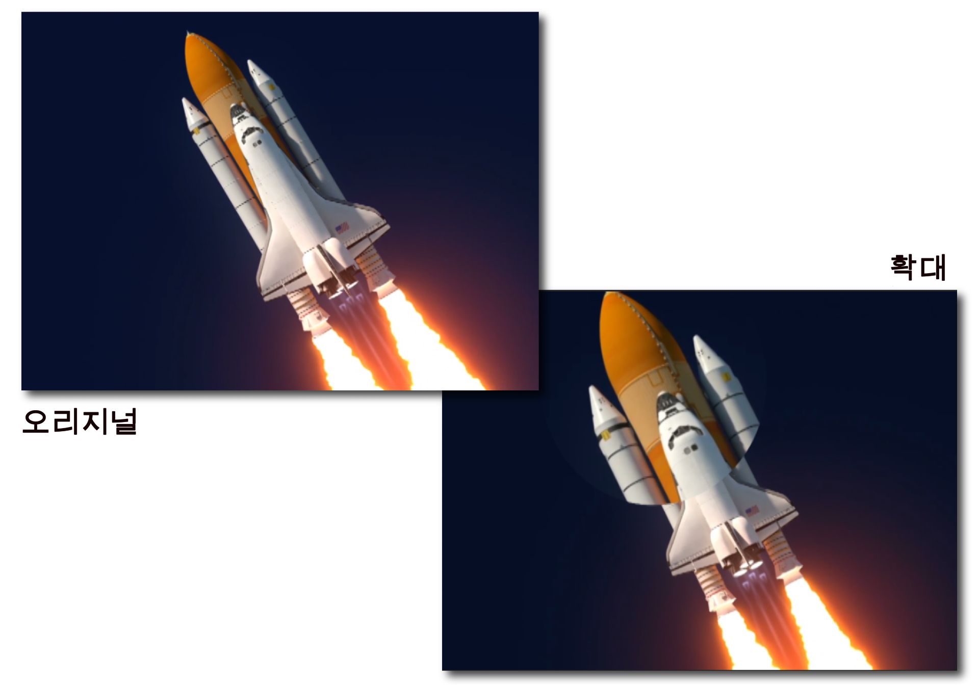 이 효과를 사용하면 돋보기를 사용하는 것처럼 이미지의 전체 또는 일부를 확대하거나, 품질 손실 없이 전체 이미지를 100% 이상 확대할 수 있습니다.