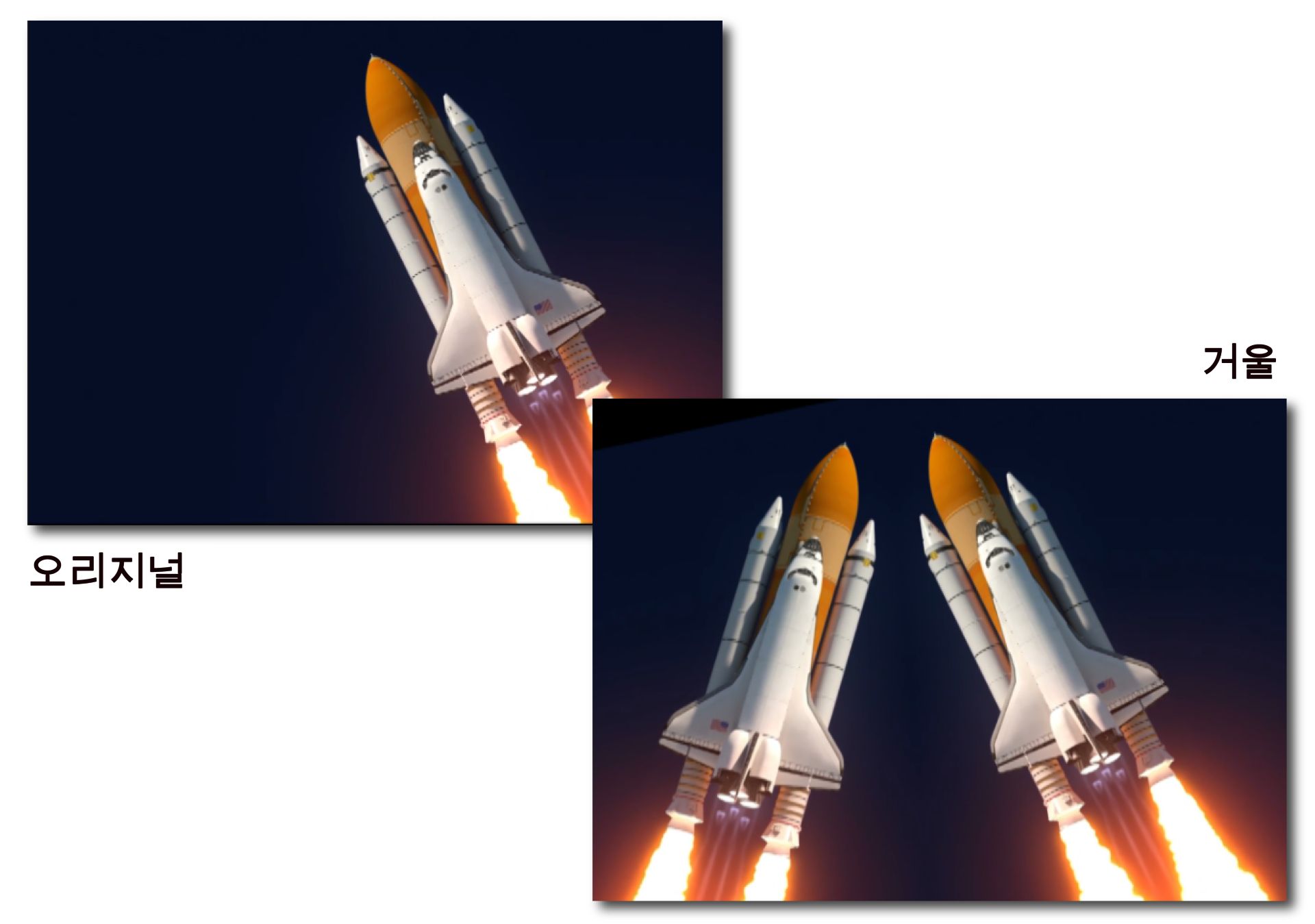 [거울] 효과는 선을 따라 이미지를 분할하며 이미지의 한 면을 다른 면에 반사합니다.