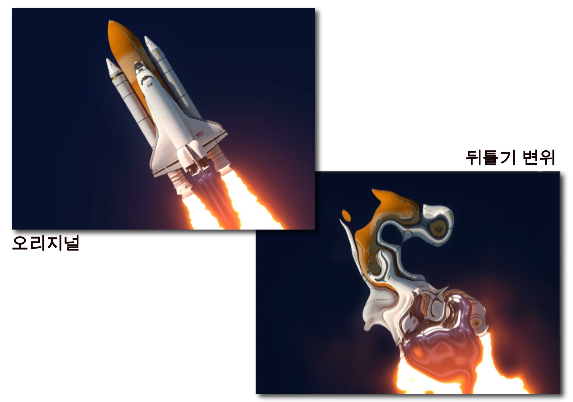[뒤틀기 변위] 효과는 프랙탈 노이즈를 사용하여 이미지에 뒤틀기 변위를 생성합니다. 예를 들어 이 효과를 사용하면 흐르는 물, 만화경, 펄럭이는 깃발 등의 효과를 만들 수 있습니다.