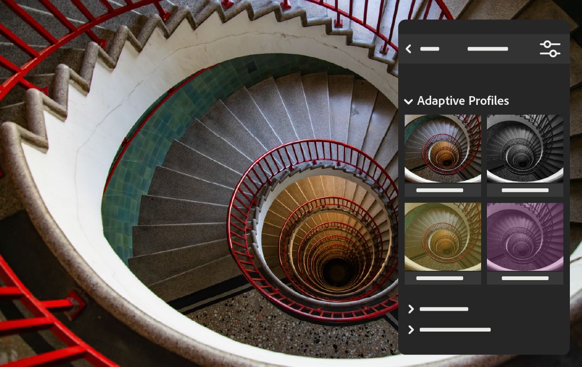 Try out the Adaptive Profiles to adjust the tone and color of your photos. For best results, try them on HDR photos.