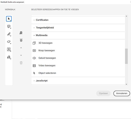 2. Ga naar Rich media > Tool Object selecteren en selecteer de optie Toevoegen aan werkbalk.
