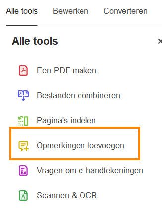 Ga naar Alle tools > Opmerkingen toevoegen.