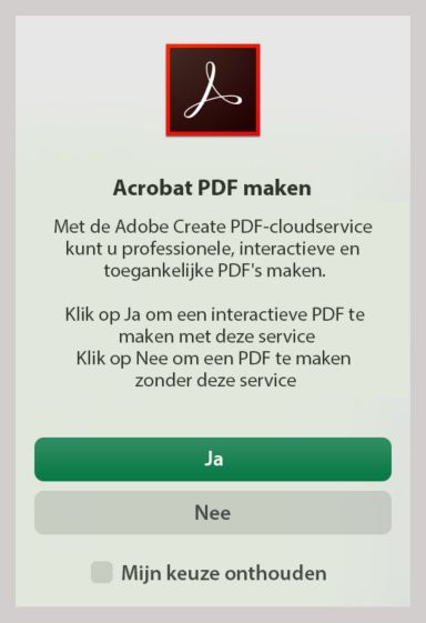 Knoppen 'Bijvoegen als Adobe PDF' weergeven