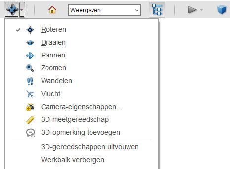 Om andere tools te bekijken selecteert u de vervolgkeuzelijst rechts van de 3D-werkbalk.