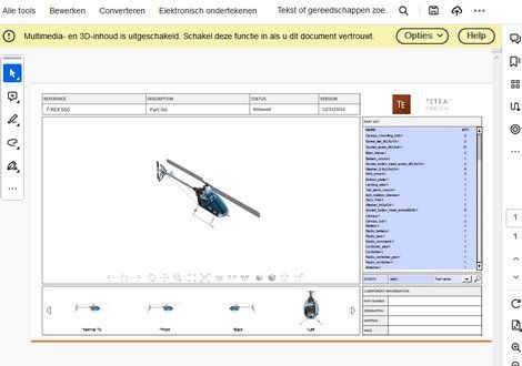 Wanneer u een PDF met 3D-content opent, verschijnt bovenaan een gele balk met het bericht Multimedia en 3D-content is uitgeschakeld. Schakel deze functie in als u dit document vertrouwt.