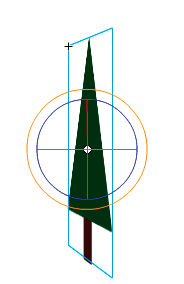 . Wanneer u een filmclip selecteert met dit gereedschap, worden de drie assen, X, Y en Z, weergegeven in het werkgebied, boven op het object. De X-as is rood, de Y-as is groen en de Z-as is blauw.