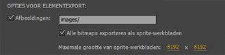 - Bitmaps worden geëxporteerd als sprite-werkblad met de opties die zijn opgegeven in het tabblad Sprite-werkblad in Publicatie-instellingen.