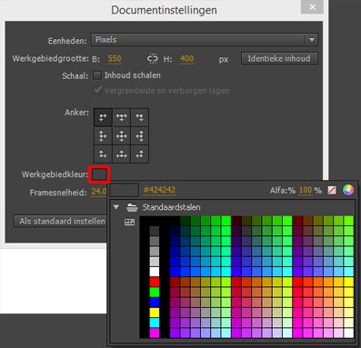 - Selecteer Wijzigen > Document > Werkgebiedkleur of ga naar de Eigenschapscontrole en selecteer Geavanceerde instellingen.