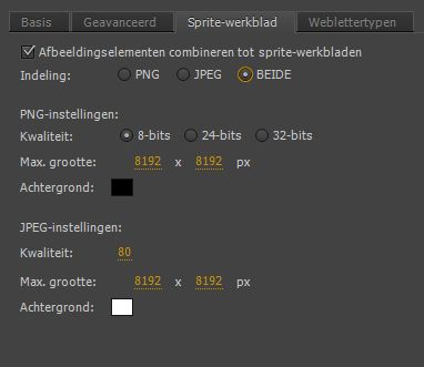 - Kwaliteit: hiermee stelt u de kwaliteit in van het sprite-werkblad.