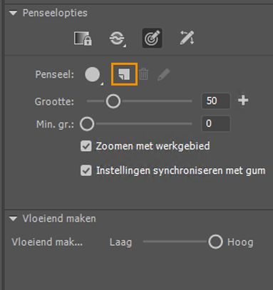 U kunt alleen de penselen bewerken die u zelf hebt gemaakt en aangepast. U kunt geen eigenschappen wijzigen van de standaardpenselen.
