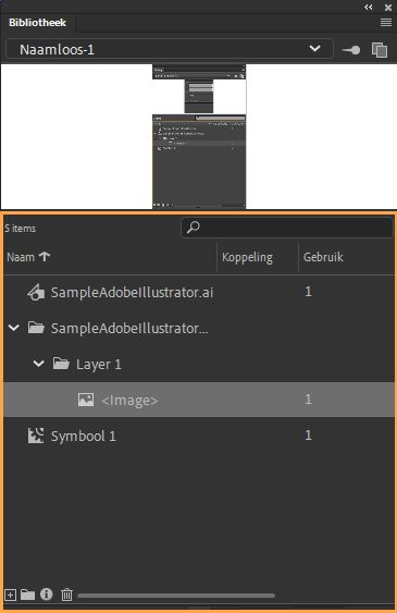 Hiermee wordt de groep in een bitmap gerasterd zodat de objecten exact zo worden weergegeven als in Illustrator. Wanneer een groep is omgezet in een bitmap, kunnen de objecten hierin niet worden geselecteerd of hernoemd.
