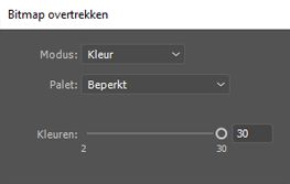 Gebruikt een beperkt aantal kleuren voor het overtrekpalet. U kunt de schuifregelaar Kleur gebruiken om de geselecteerde kleuren verder te beperken.