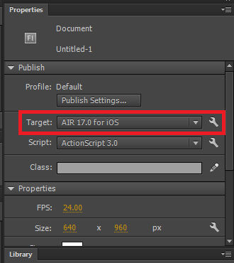 - Maak of open een bestaand AIR for iOS-document in Animate.