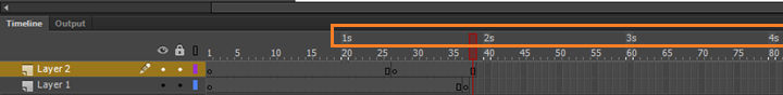 De blauwe afspeelkop boven aan de tijdlijn wordt verplaatst wanneer een document wordt afgespeeld en geeft aan welk frame momenteel in het werkgebied wordt weergegeven. De kop van de tijdlijn geeft de framenummers van de animatie aan. Wanneer u een frame wilt weergeven in het werkgebied, verplaatst u de afspeelkop naar het frame in de tijdlijn.