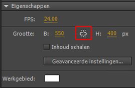 De Eigenschapcontrole en het dialoogvenster Documentinstellingen bevatten een koppelingsoptie waarmee u de afmetingen van het werkgebied proportioneel kunt vergroten. Standaard zijn de hoogte en de breedte van het werkgebied niet gekoppeld. Als u de koppeling inschakelt door op de knop Koppeling te klikken, en vervolgens de hoogte (of breedte) van het werkgebied aanpast, wordt de breedte (of hoogte) proportioneel gewijzigd.