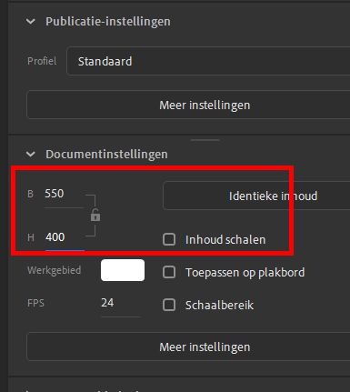 Als u de optie Inhoud schalen selecteert, worden de afmetingen van het werkgebied automatisch gekoppeld en uitgeschakeld. Dit komt omdat het schalen van inhoud handig is wanneer de afmetingen van het werkgebied proportioneel worden gewijzigd.
