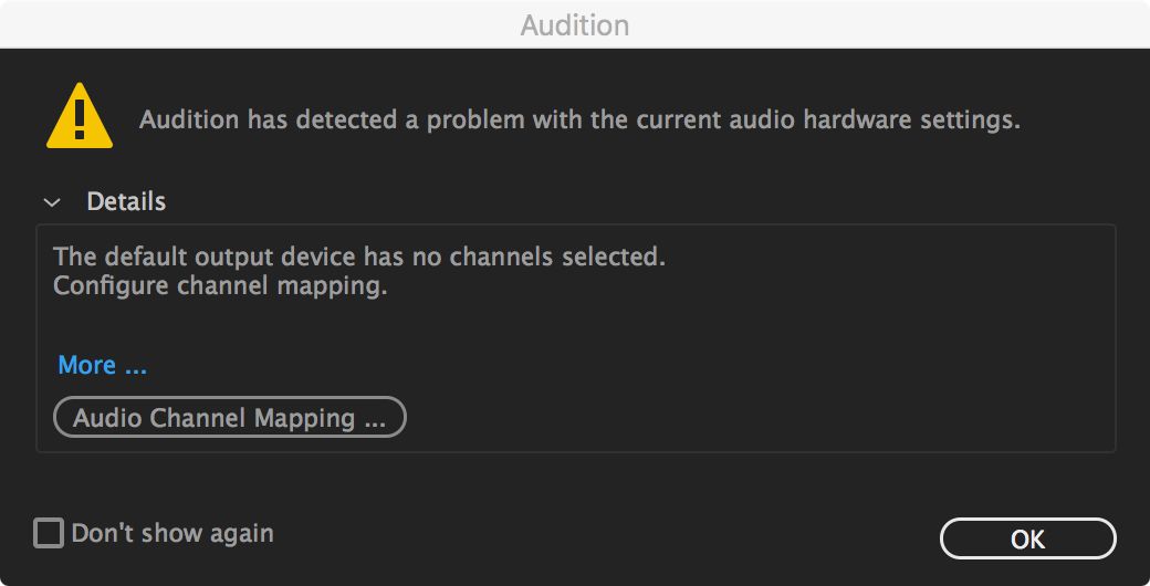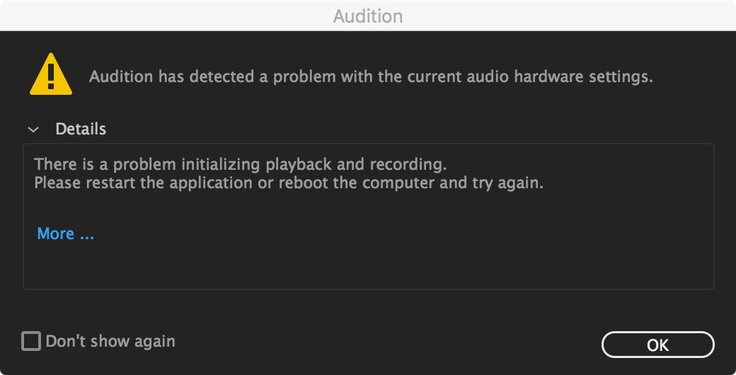Stappen: start Audition opnieuw of herstart de computer en start Audition opnieuw.