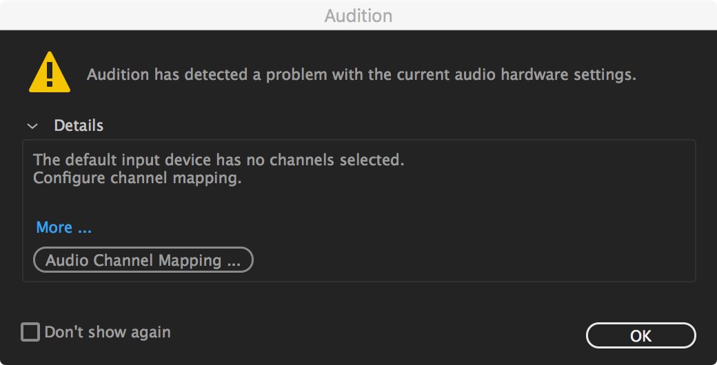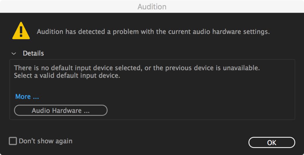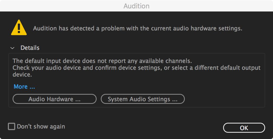 Audition biedt nuttige berichten en aanbevelingen om bekende problemen met hardwarecommunicatie op te sporen en op te lossen.  Hieronder vindt u de foutberichten voor extra stappen en informatie.