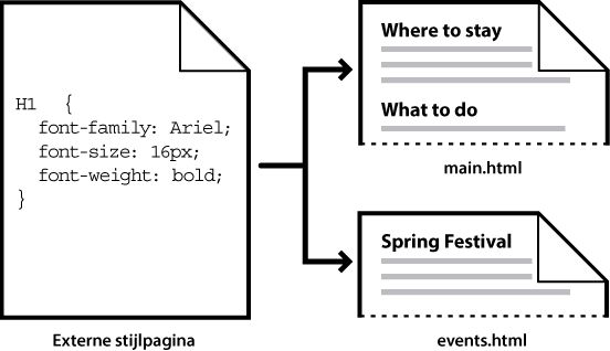 De stijl (die afkomstig is van een regel, of een verzameling regels) is ondergebracht op een plaats die anders is dan de feitelijke tekst die ermee wordt opgemaakt: doorgaans in een externe stijlpagina, of in de kopsectie van een HTML-document. Op deze manier kan één regel voor h1-tags worden toegepast op vele tags tegelijk (en in het geval van externe stijlpagina's kan de regel worden toegepast op vele tags tegelijk op vele verschillende pagina's). Daarom biedt CSS een bijzonder eenvoudige manier van bijwerken. Wanneer u een CSS-regel op één plaats bijwerkt, wordt de opmaak van alle elementen die de gedefinieerde stijl gebruiken, automatisch bijgewerkt naar de nieuwe stijl.