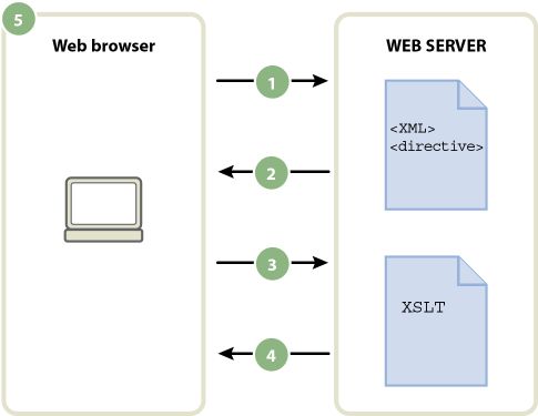 De relatie tussen de gekoppelde XSLT- en XML-pagina's is in principe dezelfde, maar is anders dan de externe CSS/HTML-paginamodellen. Als u een HTML-pagina met inhoud hebt (bijvoorbeeld tekst), gebruikt u een externe stijlpagina voor de opmaak van die inhoud. De HTML-pagina bepaalt de inhoud. De externe CSS-code, die de gebruiker nooit te zien krijgt, bepaalt de presentatie. Bij XSLT en XML is de situatie omgekeerd. Het XML-bestand (dat de gebruiker nooit ziet in zijn ruwe vorm) bepaalt de inhoud en de XSLT-pagina bepaalt de presentatie. De XSLT-pagina bevat de tabellen, opmaak, afbeeldingen enzovoort die de standaard HTML gewoonlijk bevat. Als een gebruiker het XML-bestand in een browser bekijkt, wordt de inhoud door de XSLT-pagina opgemaakt.