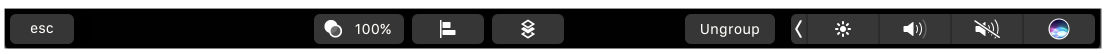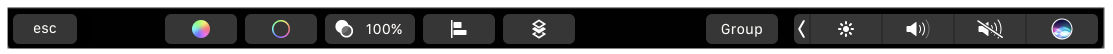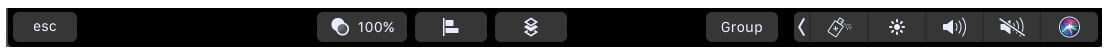 - Wanneer u een gegroepeerd object selecteert, bevat de Touch Bar opties om de dekking, uitlijning en schikking van de groep aan te passen. U kunt de objecten ook degroeperen met behulp van de Touch Bar.