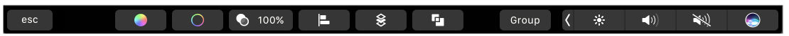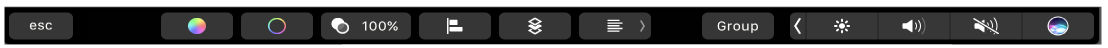 - Wanneer meerdere andere objecten zijn geselecteerd, toont de Touch Bar knoppen om de dekking, uitlijning en schikking aan te passen. U kunt de objecten ook groeperen met behulp van de Touch Bar.