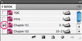 Naast elke documentnaam in het deelvenster Boek staat het paginabereik. Wanneer u pagina's aan boekdocumenten toevoegt of eruit verwijdert of wijzigingen in het boekbestand aanbrengt (documenten opnieuw schikt, toevoegt of verwijdert), worden de pagina's en secties standaard opnieuw genummerd in het deelvenster Boek. Als u de instelling voor het automatisch bijwerken van de pagina- en sectienummering uitschakelt, kunt u de nummering in een boek handmatig bijwerken.