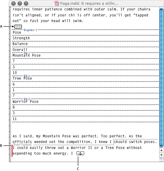 Kies Tabel > Selecteren > Koptekstrijen, Bodyrijen of Voettekstrijen.