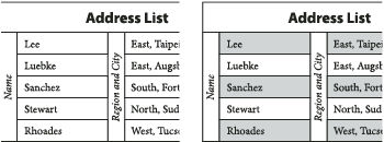 U kunt lijnen en vullingen afwisselen waardoor het geheel beter leesbaar wordt of waardoor de algehele vormgeving van de tabel verbetert. Het afwisselen van lijnen en vullingen in tabelrijen heeft geen invloed op kop- en voettekstrijen. Maar het gebruik van wisselende lijnen en vullingen in kolommen heeft wel invloed op kop- en voettekstrijen.