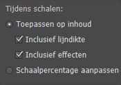 Als u bijvoorbeeld een 4-punts lijn schaalt met 200% wanneer deze optie is ingeschakeld, verandert de lijndikte in 8 punten. Als deze optie is uitgeschakeld, wordt de grootte van het object verdubbeld, maar blijft de lijndikte van het object 4 punten.