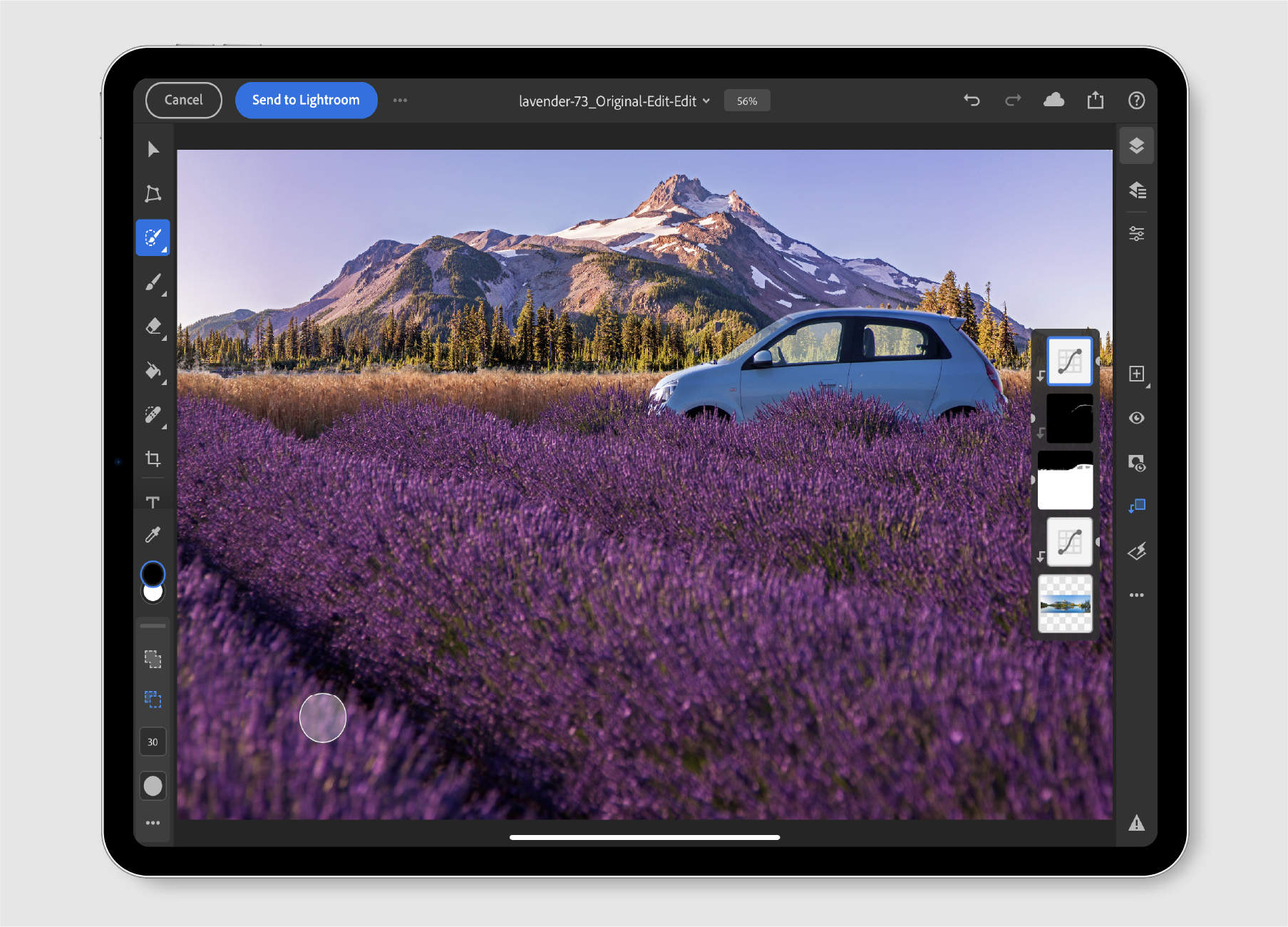 Ga als volgt te werk om een Lightroom-foto in Photoshop op de iPad te bewerken: